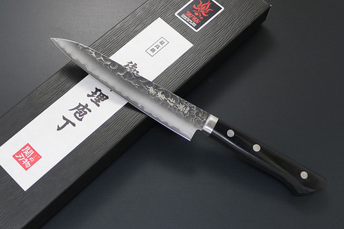 Knives of this series feature Hon-Warikomi clad blades with a VG-1 core sandwiched by SUS410 stainless steel. This provides excellent edge-retention to a hardness of HRC 59-60. They are beautifully-hammered, mirror polish, tsuchime-finish blades. "Tsuchime", is a Japanese-style hammer finish and helps to release foods quickly from the blade while cutting, making the meal-prep process quicker and more efficient. Proudly made in Seki, Japan.